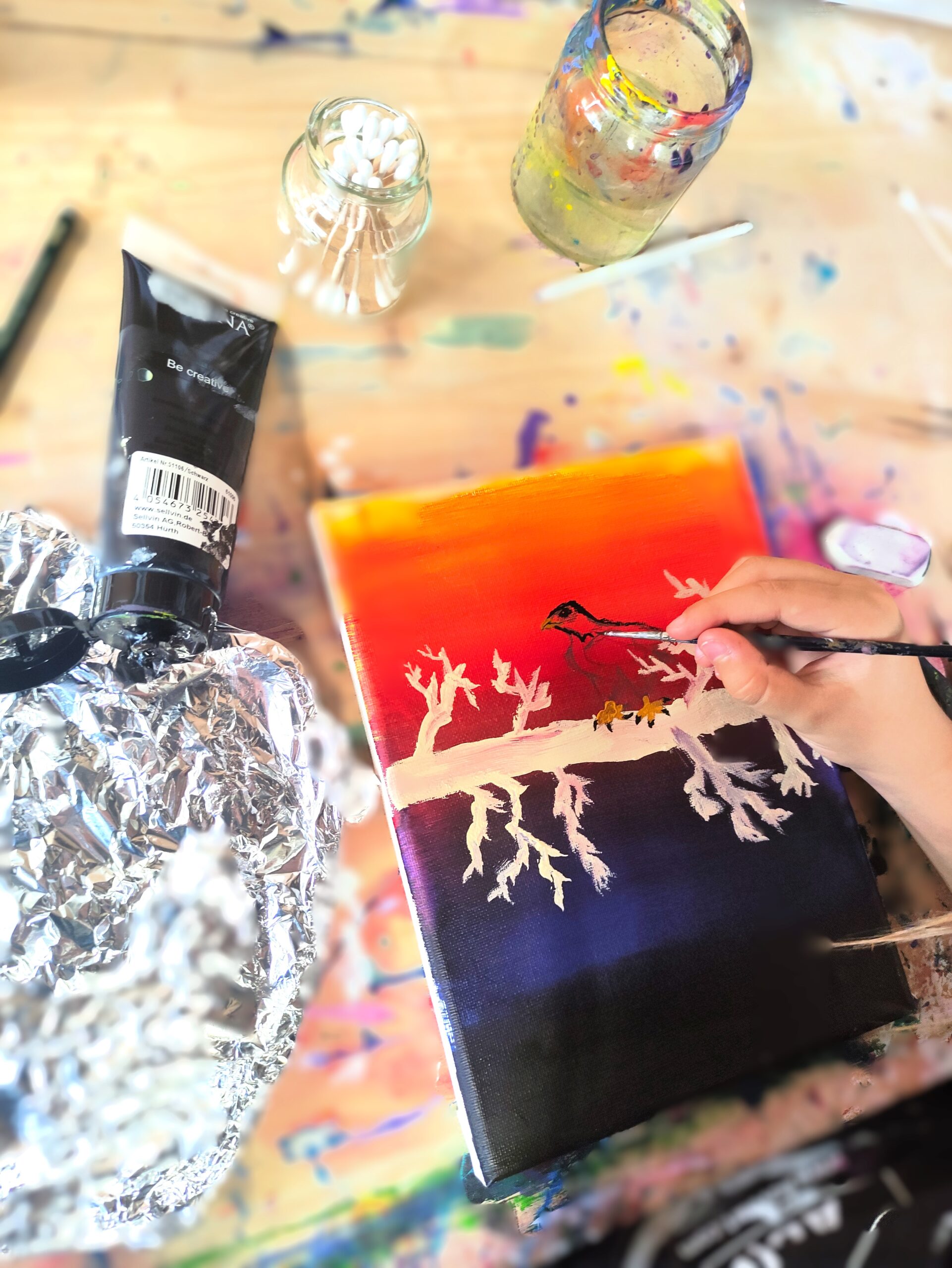 „Ich habe ein Bild für unser Sternenkind gemalt um meine Trauer auszudrücken und etwas ganz Persönliches für den kleinen Stern zu haben.“